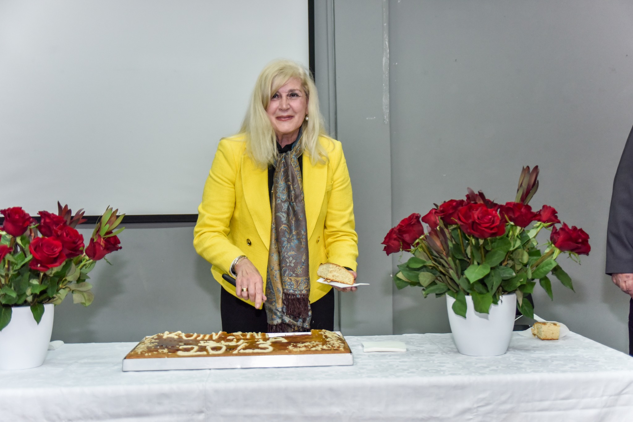 Ακολούθησε η διαδικασία κοπής της βασιλόπιτας όπου τα στελέχη που κλήθηκαν να κόψουν κομμάτι το αφιέρωσαν με σύντομες αναφορές σε επιμέρους τομείς της πόλης.