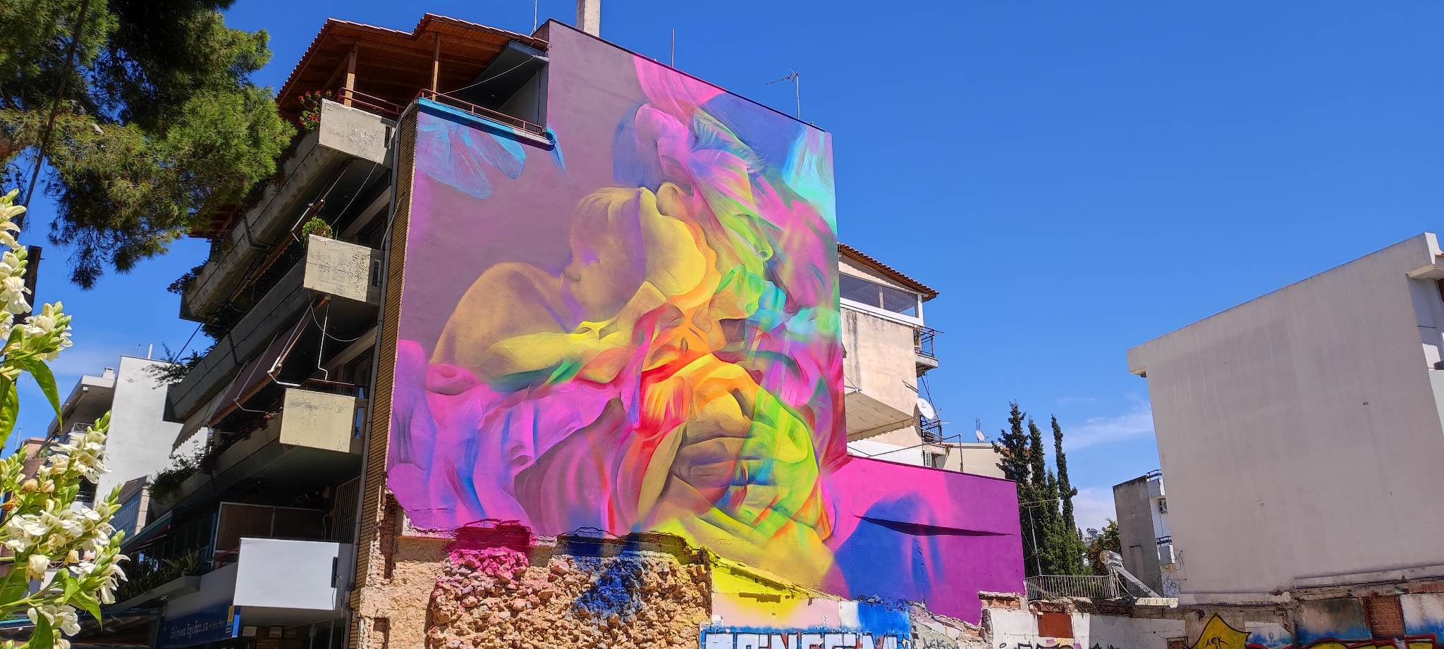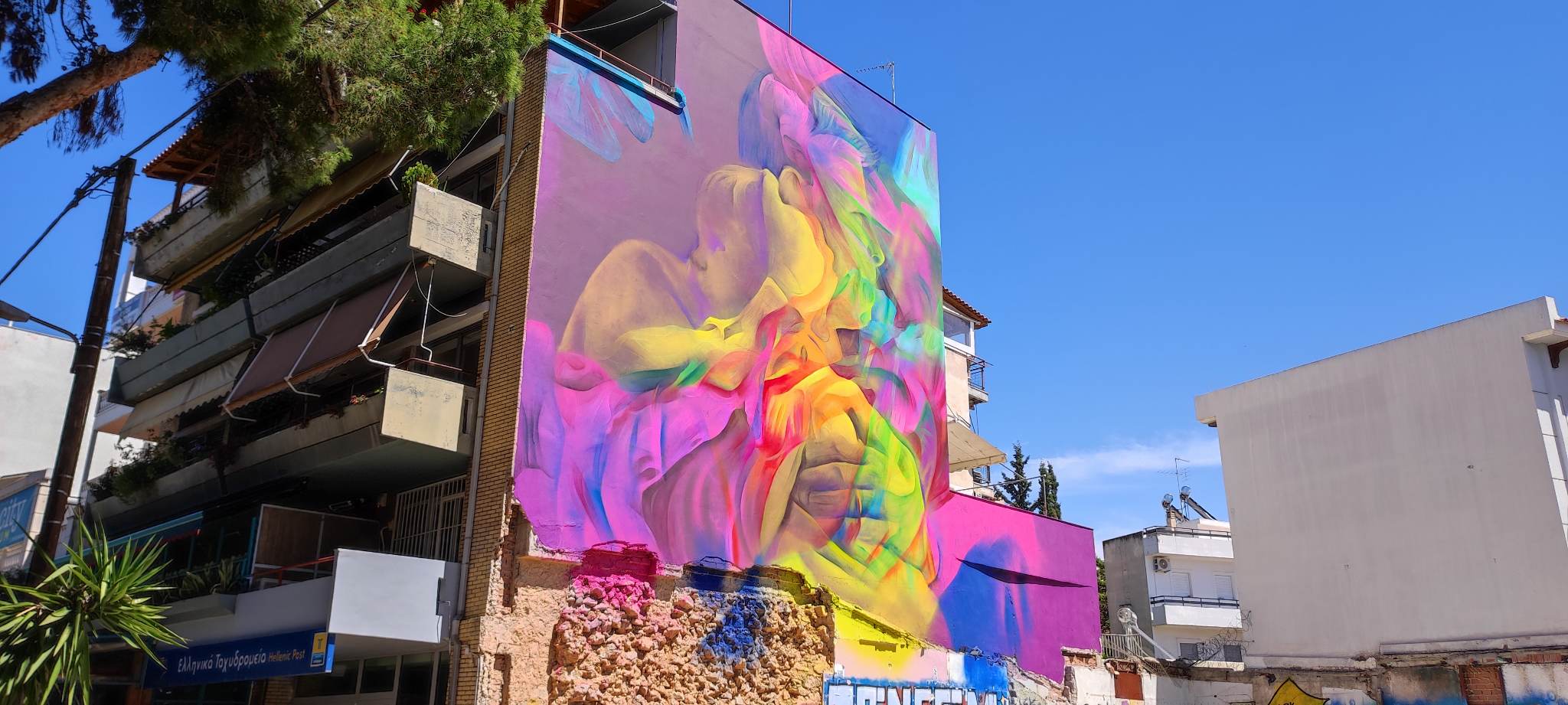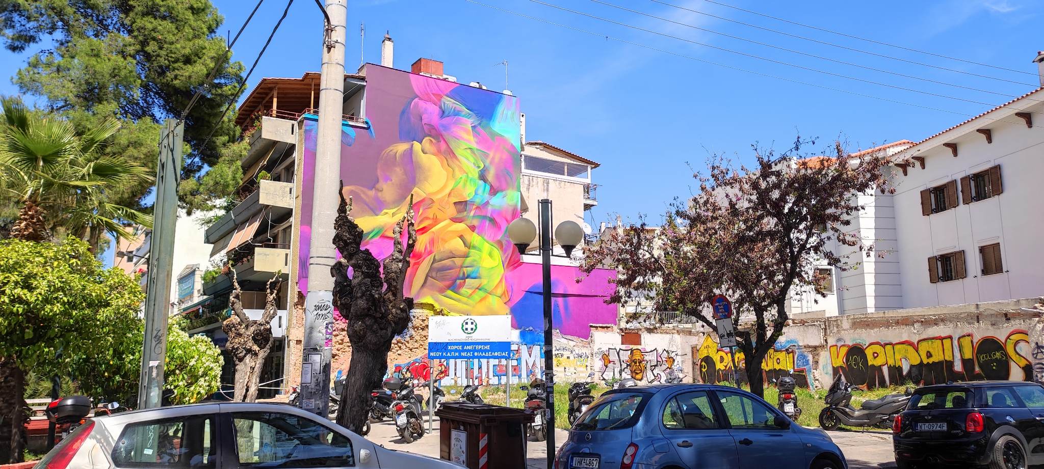 Ένα καλαίσθητο graffity έκανε την εμφάνισή του στο κέντρο της Νέας Φιλαδέλφειας στην διασταύρωση της οδού Επταλόφου με τη Λ. Δεκελείας. Καλύπτει όλη την νότια πλευρά της πολυκατοικίας στην οποία στεγάζεται το Ταχυδρομείο. Το θέμα είναι μια μητέρα που κρατά στην αγκαλιά της ένα βρέφος