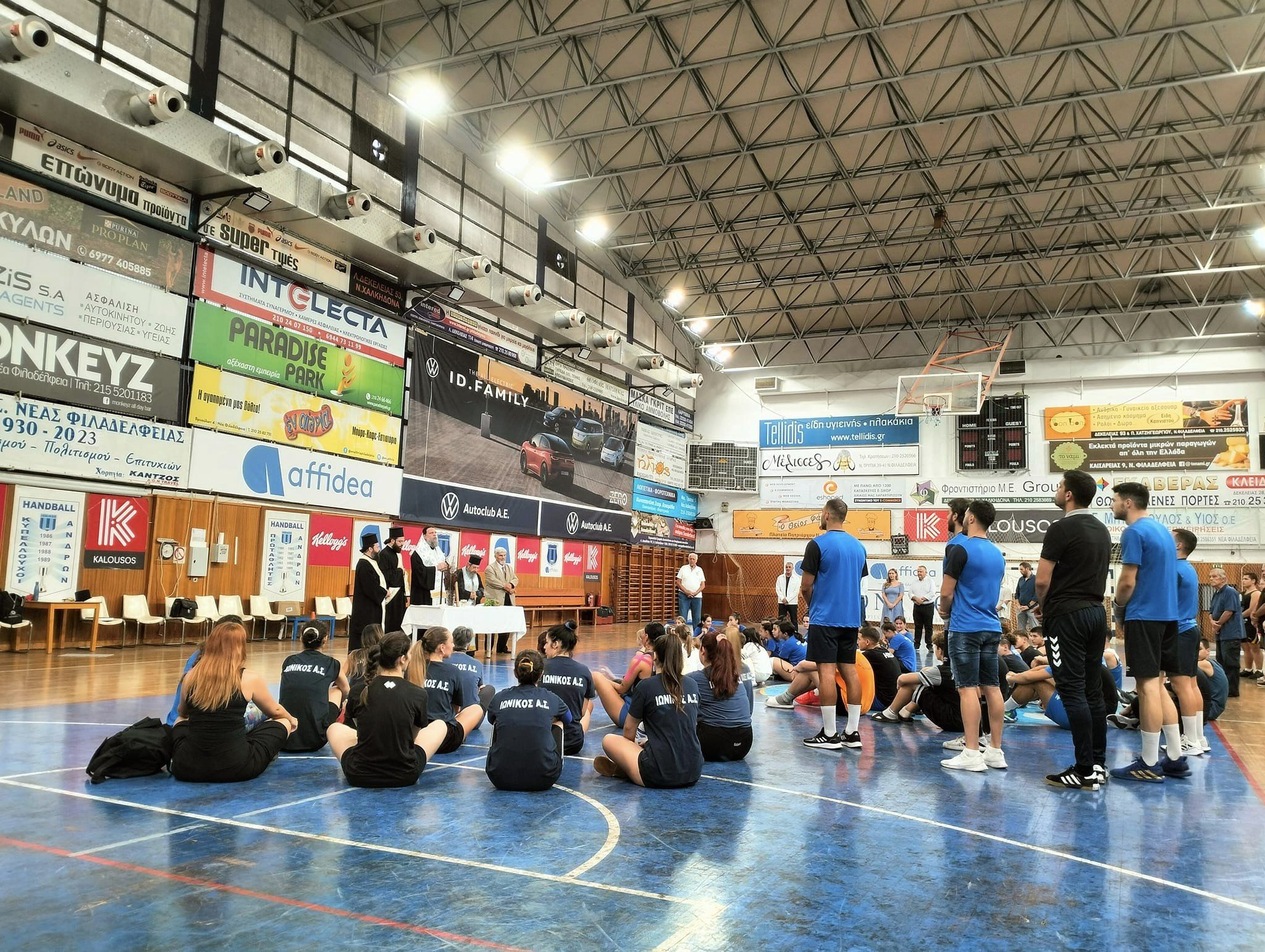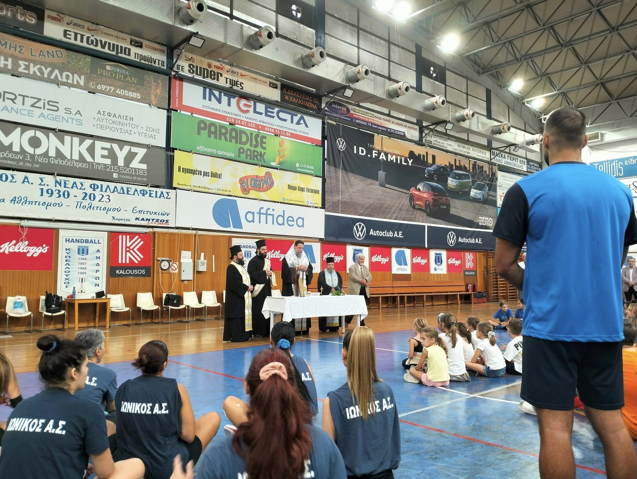 Τον αγιασμό τέλεσε ο σεβασμιώτατος Μητροπολίτης Νέας Ιωνίας, Φιλαδελφείας, Ηρακλείου και Χαλκηδόνος κ. Γαβριήλ, ο οποίος μας τίμησε για άλλη μια χρονιά με την παρουσία του, ενώ στον χαιρετισμό του, πέρα από τα όμορφα λόγια προς τα παιδιά που γυμνάζονται στις ακαδημίες του Ιωνικού, δεν παρέλειψε να αναφερθεί στην πλούσια ιστορία του Ιωνικού και στην συνεισφορά του στην εξέλιξη της Νέας Φιλαδέλφειας και της ευρύτερης περιοχής.