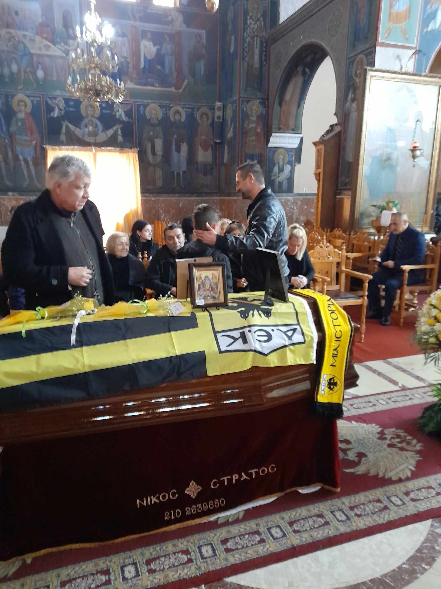 Στις 14:00 θα ψαλεί η νεκρώσιμος ακολουθία στον Ιερό Ναό Αγίας Τριάδας, που βρίσκεται δίπλα στο γήπεδο της ΑΕΚ, και η ταφή θα πραγματοποιηθεί στο Κοιμητήριο Καλλιθέας.