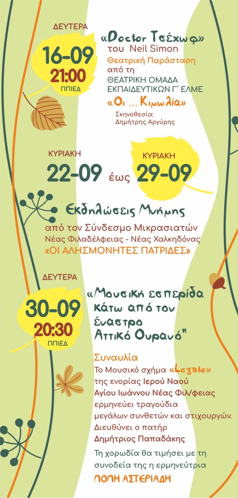 Ο «Πολιτιστικός Σεπτέμβρης» περιλαμβάνει θεατρικές και μουσικές παραστάσεις,