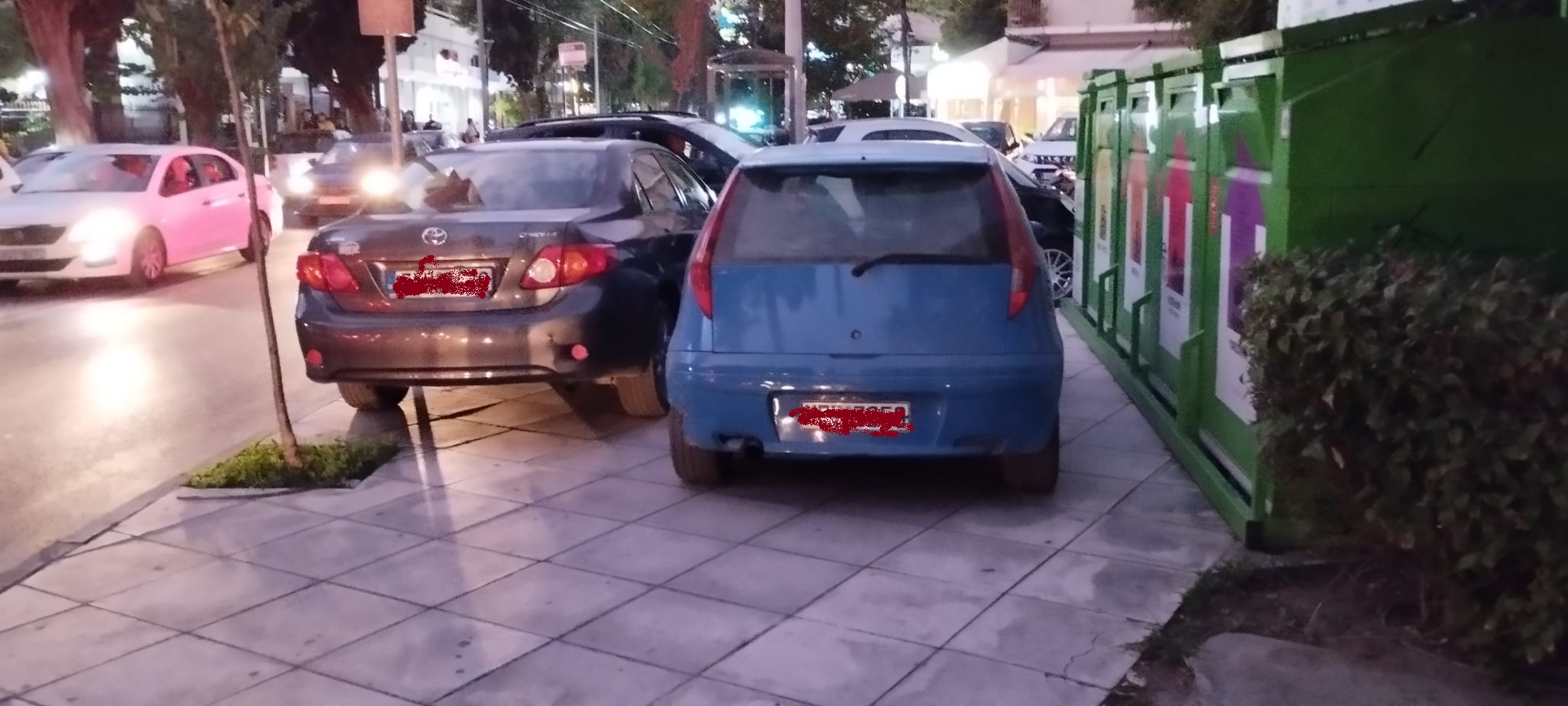 Καταστροφή δημόσιου και κοινόχρηστου χώρου : Η καταστροφή των πεζοδρομίων και των πλατειών, καθώς και η ανεπαρκής αστυνόμευση, συμβάλλουν στη φθορά των υποδομών και του δημόσιου χώρου. Η έλλειψη προγραμματισμένης δράσης από την Τροχαία και τον Δήμο δημιουργεί μακροπρόθεσμες ζημιές στο αστικό ιστό της περιοχής.
