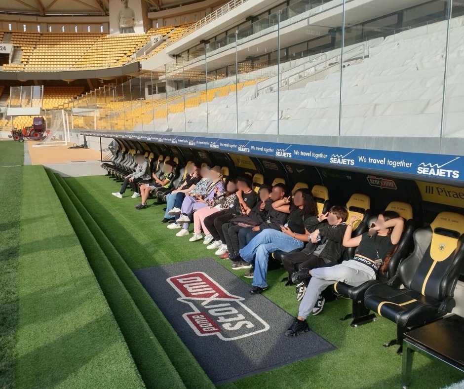 Τα παιδιά, ηλικίας 14-17 ετών, και οι συνοδοί τους ξεναγήθηκαν στους χώρους του γηπέδου και έμαθαν πολλά για την ΑΕΚ και την ιστορία της, αλλά και για το υπερσύγχρονο γήπεδό της, το οποίο θαύμασαν.