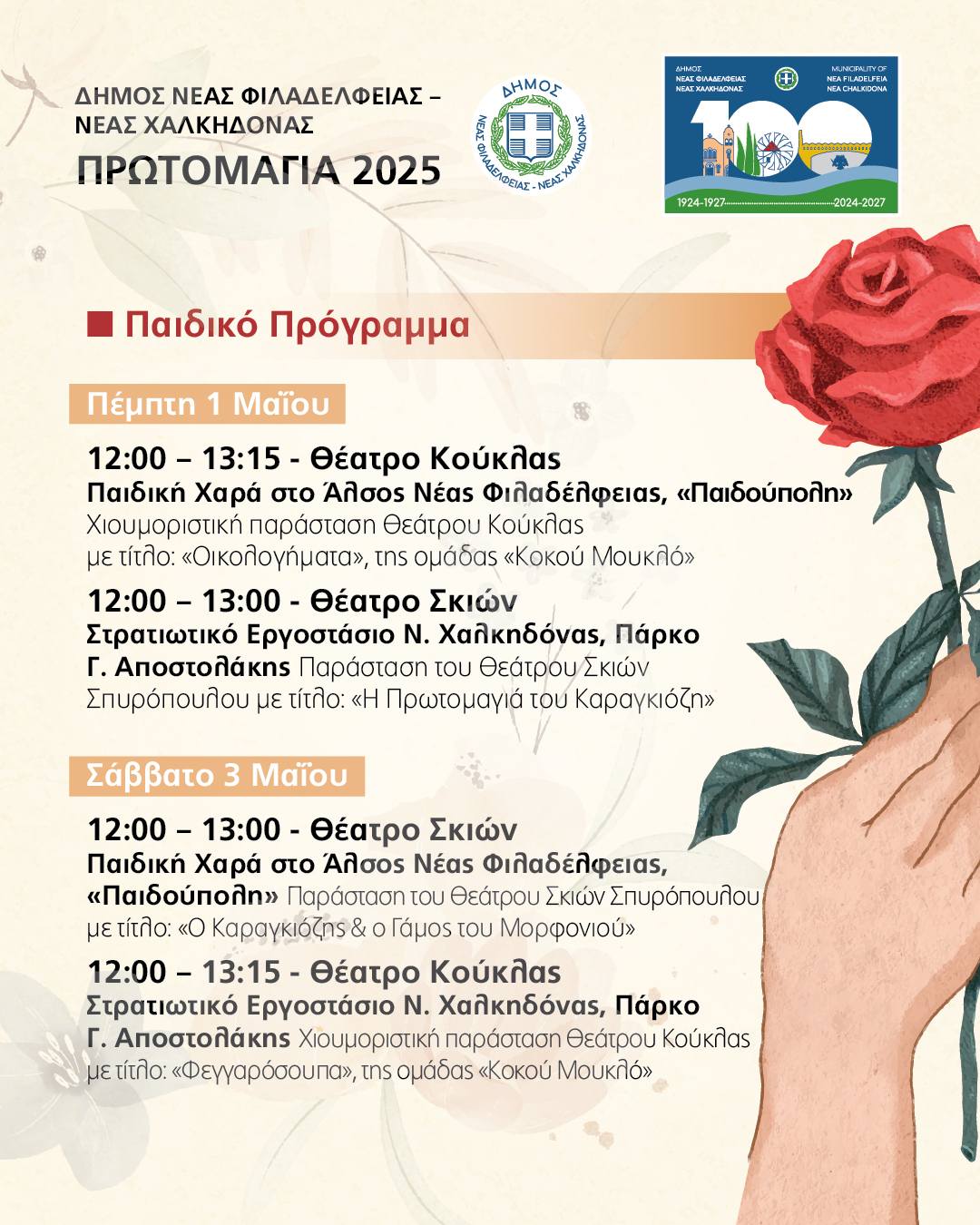 Η Πρωτομαγιά του 2025 στη Νέα Φιλαδέλφεια παρουσιάζει μια εικόνα πλήρους υποβάθμισης του εργατικού περιεχομένου της ημέρας, με μια διοργάνωση που μοιάζει να έχει απομακρυνθεί από το βαθύ και ιστορικό μήνυμα των αγώνων των εργαζομένων και των κοινωνικών δικαιωμάτων. Η μοναδική αναφορά στο περιεχομενο της ημέρας φαίνεται να επιχειρείται μέσω της παράστασης του παιδικού Καραγκιόζη με το έργο “Η Πρωτομαγιά του Καραγκιόζη”, μια επιλογή που μοιάζει περισσότερο με μια προσπάθεια να «εξωραϊστεί» η πραγματική σημασία του αγώνα για τα εργατικά δικαιώματα.