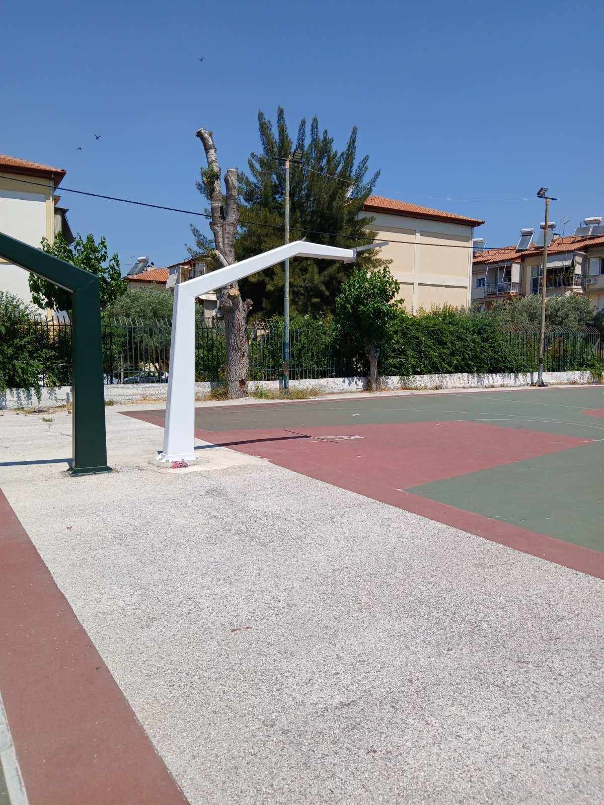 Σχεδόν ένα μήνα χωρίς μια μπασκέτα τα γηπεδάκια στο δημοτικό γυμναστήριο στην συμβολή των οδών Δεκελείας και Γρ. Ξενοπούλου.