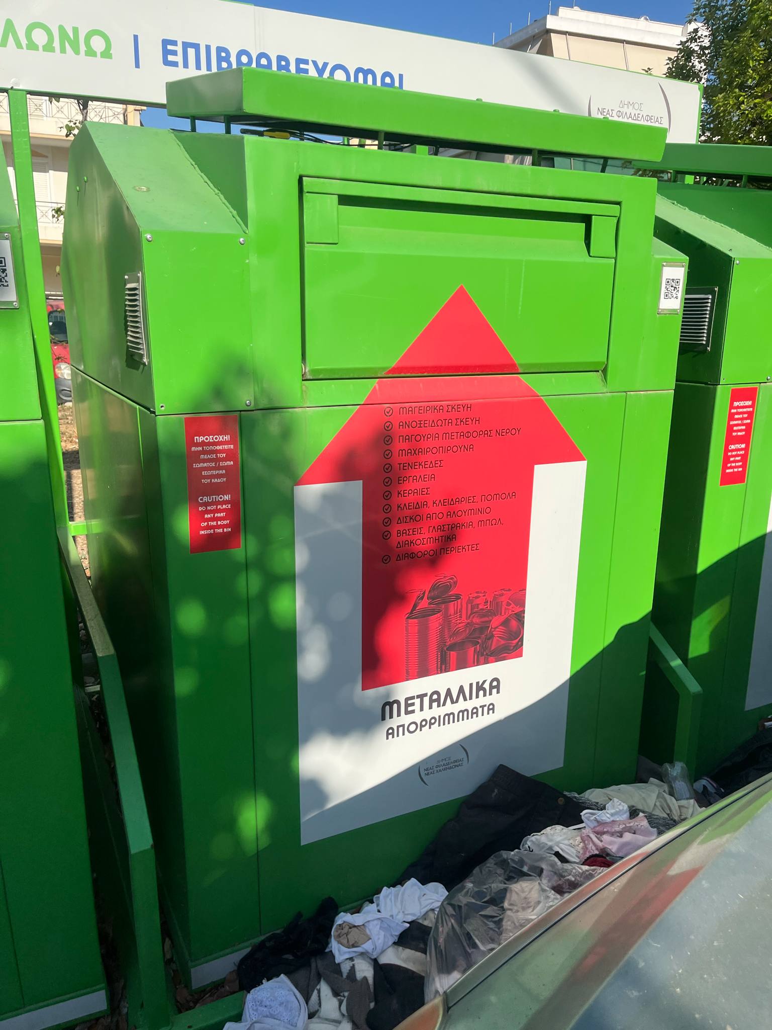 Στη συμβολή των οδών Ανθέων, Σελευκείας και Λαυρίου, στη Νέα Μάδυτο, η εικόνα που αντικρίζει κανείς είναι ντροπιαστική και αποκαρδιωτική. Εκεί όπου κάποτε υπήρχε ένα σημείο ανακύκλωσης, σήμερα δεσπόζει η εγκατάλειψη, η ασυδοσία και η πλήρης αδιαφορία της δημοτικής αρχής. Το σημείο βρίσκεται εκτός λειτουργίας, οι ειδικοί κάδοι έχουν προφανώς πάψει να εξυπηρετούν τον σκοπό τους και τα είδη προς ανακύκλωση –στην προκειμένη περίπτωση ρούχα– βρίσκονται πεταμένα εκτός των δοχείων, παρατημένα στη μοίρα τους, εκτεθειμένα στις καιρικές συνθήκες και την αδιαφορία. Η σχετική οθόνη δεν λειτουργεί και αυτή