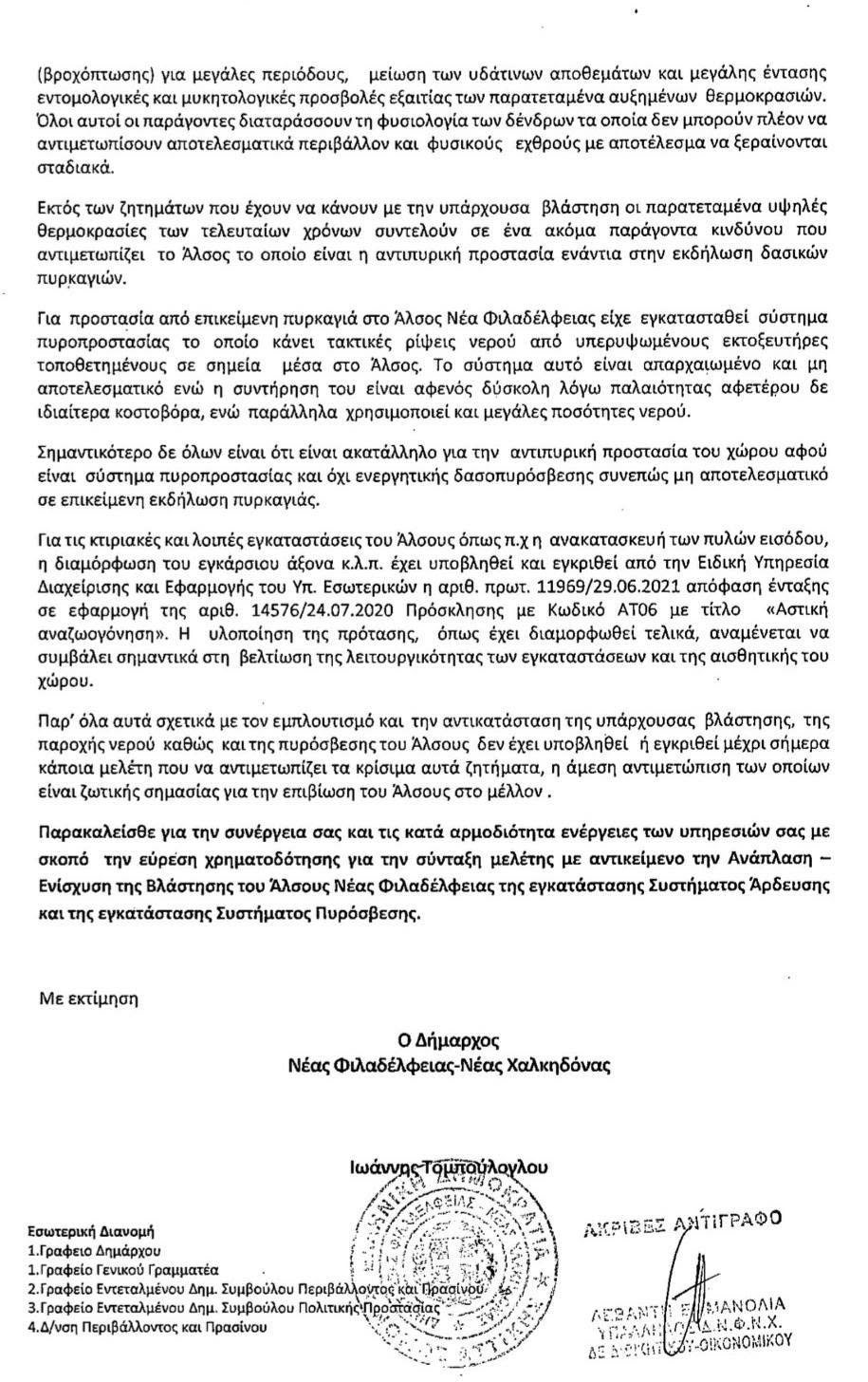 Το Άλσος και η χλωρίδα του εκπέμπουν SOS, και η διοίκηση καθυστέρησε 19 μήνες να ασχοληθεί με το περιβαλλοντικό κομμάτι στέλνοντας μια επιστολή! και αυτό μετά από