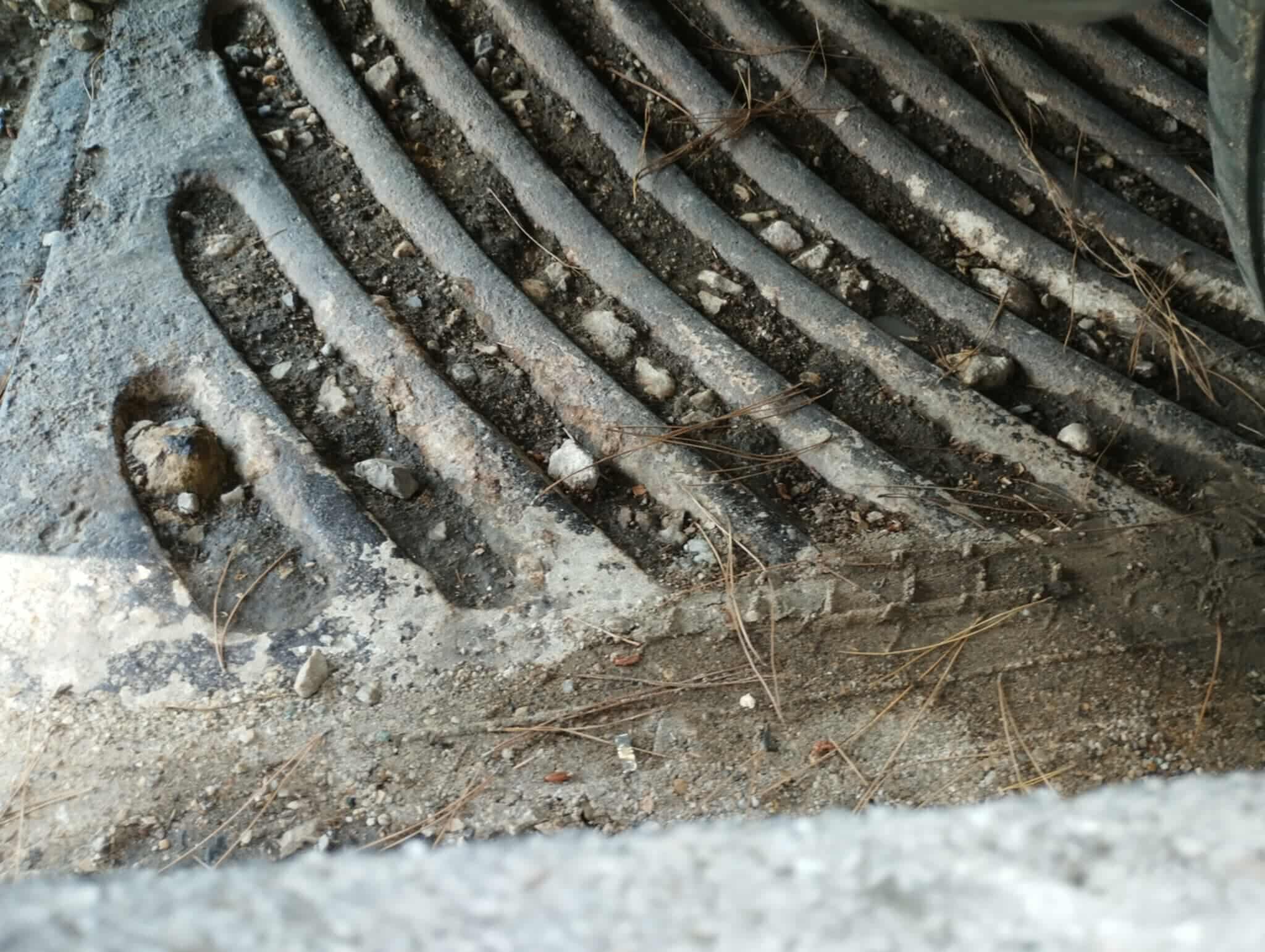 Τα νερά λιμνάζουν και τα φρεάτια ομβρίων είναι βουλωμένα. Σε κάθε βροχή η πεζογέφυρα γίνεται παγίδα. Χώρος χωρίς καθαριότητα.