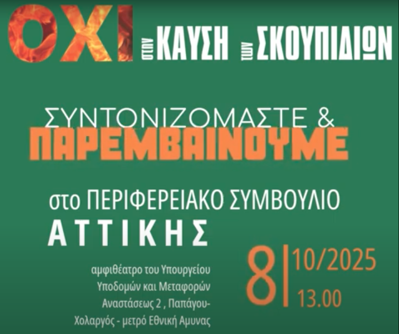 Το Δυτικό Μέτωπο καλεί -φορείς, συλλογικότητες και πολίτες της Αττικής- να μεταφέρουν παντού αυτό το μήνυμα και να ενισχύσουν αυτήν την προσπάθεια με την παρουσία τους.