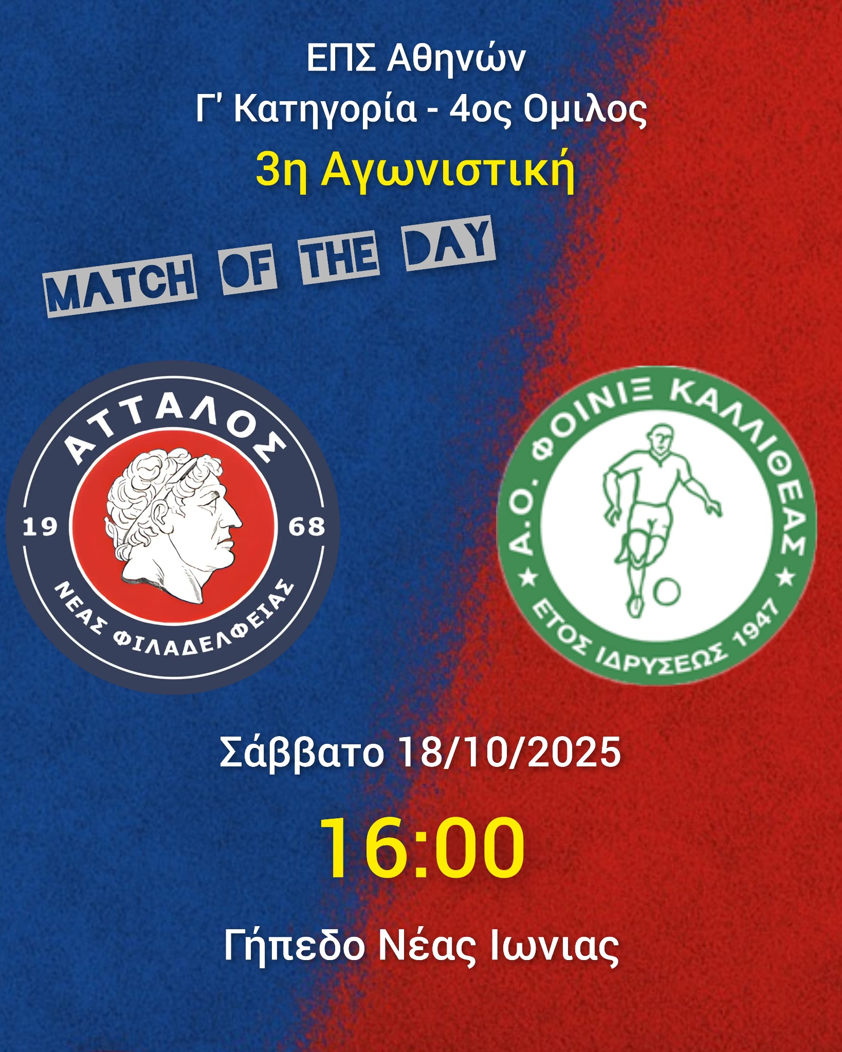 Αλλάζει έδρα ο Ατταλος , στο γήπεδο Νέας Ιωνίας θα δίδει τα εντός έδρας παιχνίδια. Μέχρι τώρα χρησιμοποιούσε το γήπεδο στον Κόκκινο Μύλο. Πρώτος αγκώνας στη νέα έδρα με τον Φοίνικα Καλλιθέας αύριο Σάββατο 18/10/25.