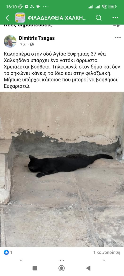 Το Σάββατο αναρτήθηκε αυτή η ενημέρωση, την οποία έλαβα μέσω screen shot από πολίτη ετεροχρονισμένα. Αρχικά να αναφέρω ότι τόσο ο φιλοζωικόs σύλλογος, όσο κι εγώ , στα προσωπικά μας τηλέφωνα δεν βρήκαμε κάποια κλήση. Δεν γνωρίζω πού τηλεφώνησε ο πολίτης για βοήθεια, ωστόσο σίγουρα τα σταθερά τηλέφωνα του δήμου, δεν λειτουργούν το Σαββατοκύριακο, όπως και όλες οι δημόσιες υπηρεσίες.