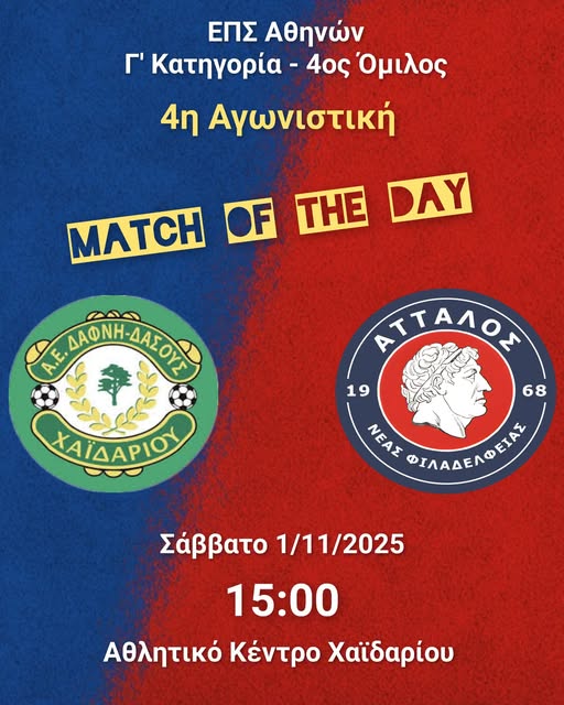 Σε μία από τις πιο απαιτητικές εξόδους της φετινής σεζόν, ο Άτταλος Νέας Φιλαδέλφειας φιλοξενείται το Σάββατο 1 Νοεμβρίου στις 15:00 από το Δάσος Χαϊδαρίου, στο πλαίσιο της τέταρτης αγωνιστικής του πρωταθλήματος.