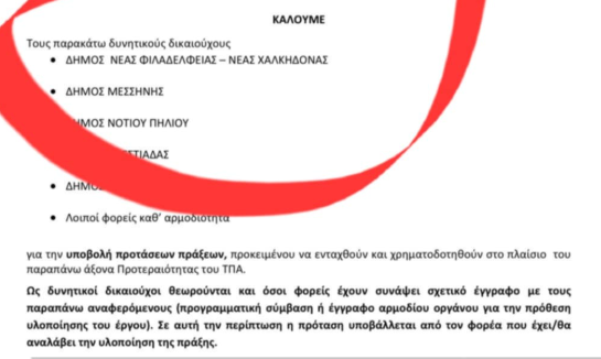 Παράλληλα, όμως, αναδεικνύει και τα κενά της μέχρι τώρα διαχείρισης: ενώ το ύψος της δαπάνης για τη μελέτη είχε αναφερθεί από τη δημοτική αρχή πολλούς μήνες πριν, το γεγονός ότι το υπουργείο καλεί τώρα τους δήμους να υποβάλουν προτάσεις φαίνεται πως ο Δήμος δεν είχε μέχρι σήμερα προχωρήσει σε αρμόδια υποβολή.