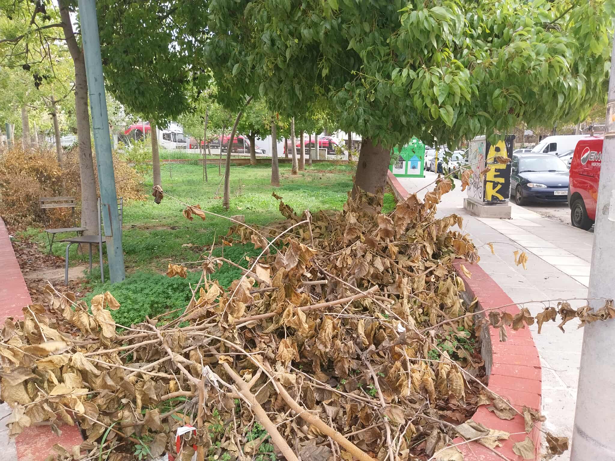 Στην περιοχή της Ειρήνης και συγκεκριμένα στην οδό Ξάνθης, η εικόνα μόνο… ειρήνη δεν θυμίζει. Συσσωρευμένα σκουπίδια, υπερχειλισμένοι κάδοι, προϊόντα κλαδέματος που παραμένουν επί εβδομάδες στο ίδιο σημείο, ξερά και επικίνδυνα. Οι κάτοικοι αγανακτισμένοι βλέπουν το τοπίο της γειτονιάς τους να μετατρέπεται σε μικρή χωματερή.