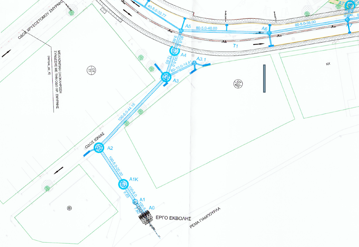 Ο αγωγός βαρύτητας Φ1000 προς το ρέμα Γιαμπουρλά —ο μόνος τρόπος μόνιμης και ασφαλούς απορροής— προβλεπόταν ρητά από τις μελέτες του 2019.