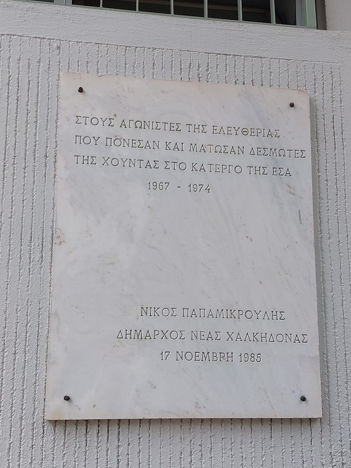 Στο χώρο όπου σήμερα βρίσκεται το 2ο Νηπιαγωγείο – 2ο Δημοτικό Νέας Χαλκηδόνας κατά τη διάρκεια της χούντας υπήρχαν κρατητήρια της ΕΑΤ-ΕΣΑ.