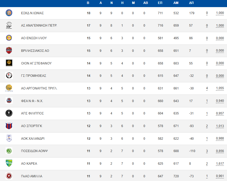 Αγ. Στέφανος (Αλεξόπουλος, Χρυσικός): Χαλάτσης 10 (2), Κύρου, Αγγελίδης, Χρυσός 9, Βασιλείου, Αγγέλου 2, Καραδημητρίου, Κολτσίδας 14 (3), Αγορόπουλος 19, Κωτίδης, Λάζος 6, Παπαντωνάκος 9 (3).