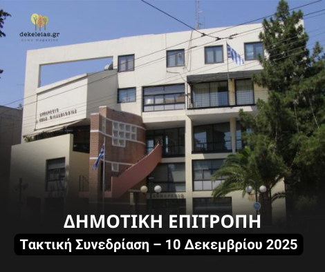 Σας παρακαλούμε όπως προσέλθετε σύμφωνα με τις διατάξεις του άρθρου 75 του Ν. 3852/10, όπως ισχύει, την 10η του μηνός Δεκεμβρίου 2025, ημέρα Τετάρτη και ώρα 9 π.μ., στο Δημοτικό Κατάστημα (Δεκελείας 97-3ος όροφος) σε τακτική Συνεδρίαση της Δημοτικής Επιτροπής για συζήτηση και λήψη απόφασης στα κατωτέρω θέματα:
