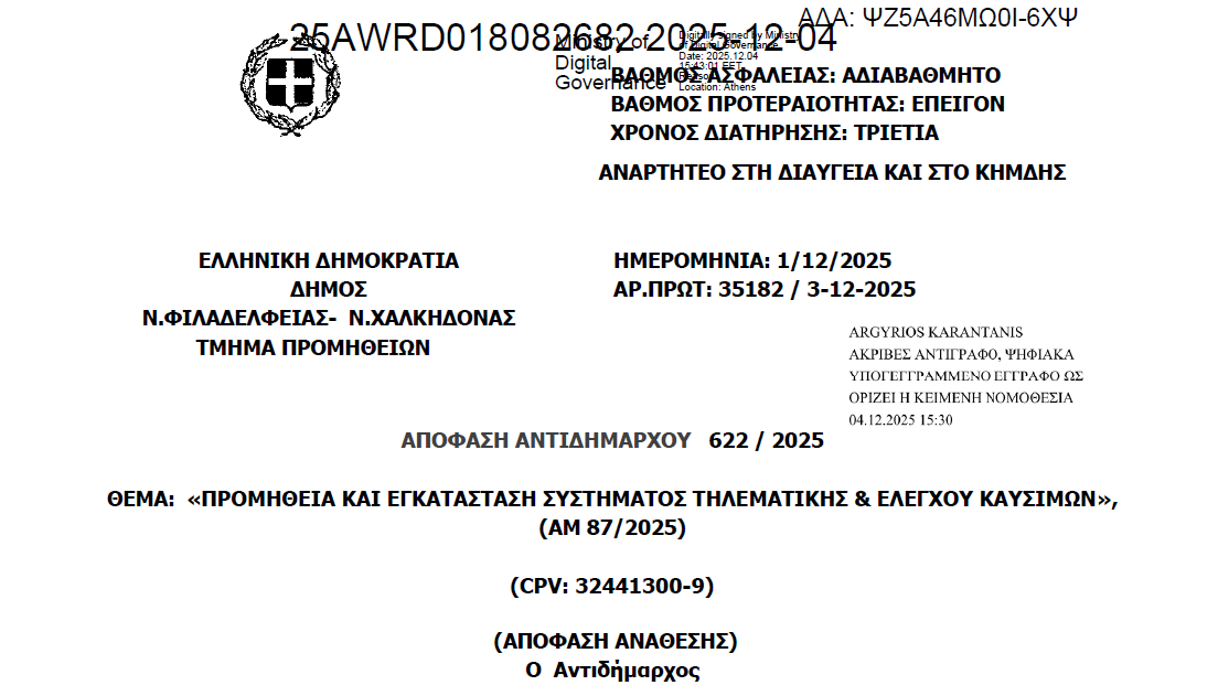 Νέα απευθείας ανάθεση δημοσιεύθηκε στη Διαύγεια από τον Δήμο Νέας Φιλαδέλφειας – Νέας Χαλκηδόνας, την ίδια χρονική περίοδο που ανακοινώθηκε η εκλογή του Συμπαραστάτη του Πολίτη.