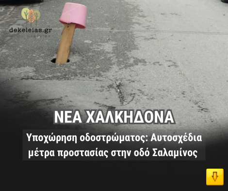 Στην οδό Σαλαμίνος, στη Νέα Χαλκηδόνα, σημειώθηκε πρόσφατα υποχώρηση του οδοστρώματος, με αποτέλεσμα τη δημιουργία επικίνδυνης τρύπας. Πιθανό αίτιο του φαινομένου θεωρούνται οι τελευταίες έντονες βροχοπτώσεις, οι οποίες φαίνεται να δημιούργησαν συνθήκες αποσταθεροποίησης του υπεδάφους. Παρά την απουσία άμεσης επίσημης παρέμβασης, κάτοικοι της περιοχής προχώρησαν σε πρόχειρη σήμανση του σημείου, προκειμένου να αποφευχθούν ατυχήματα σε οχήματα και πεζούς.