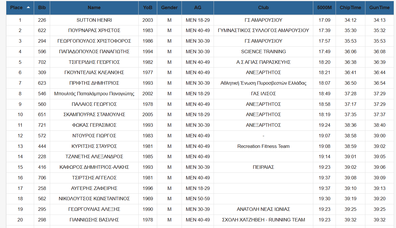 Ο αγώνας περιελάμβανε δύο βασικές αποστάσεις. Στα 10.000 μέτρα, στους άνδρες, την πρώτη θέση κατέκτησε ο Sutton Henri με χρόνο 34.12, ενώ στις γυναίκες πρώτη τερμάτισε η Ελισάβετ Δήμου με χρόνο 41.47. Συνολικά, στα 10.000 μέτρα τερμάτισαν 257 αθλήτριες και αθλητές, επιβεβαιώνοντας τη σημαντική απήχηση της διοργάνωσης.