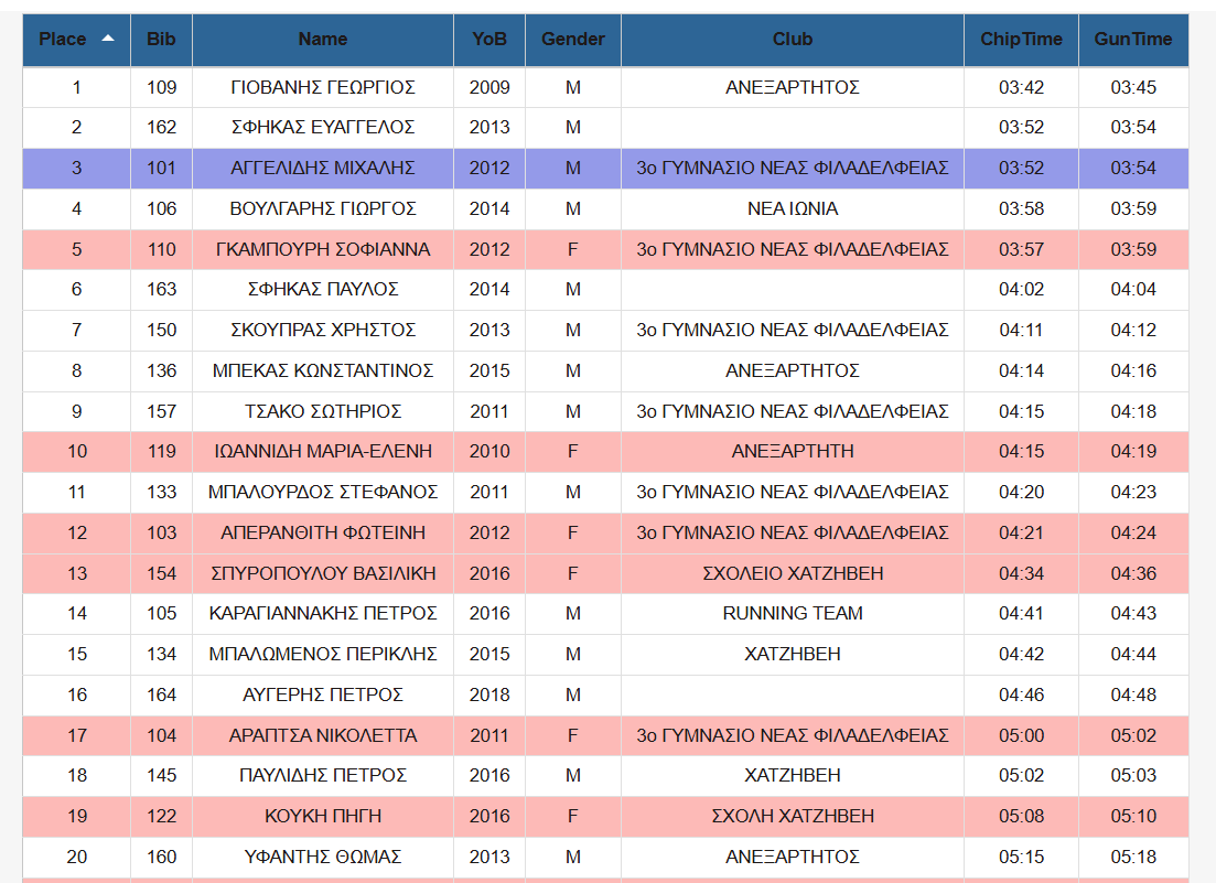ΟΙ 2Ο ΟΠΡΩΤΟΙ ΚΑΘΕ ΚΑΤΗΓΟΡΙΑΣ ΑΓΩΝΑ