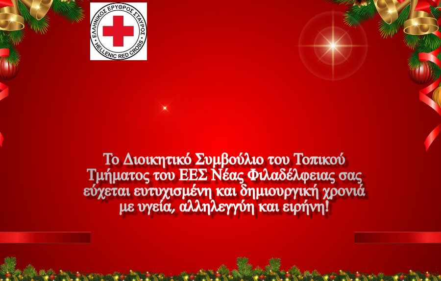 Τις όμορφες και εγκάρδιες ευχές του Διοικητικού Συμβουλίου του Τοπικού Τμήματος του Ελληνικού Ερυθρού Σταυρού Νέας Φιλαδέλφειας δέχτηκε το dekeleias.gr με αφορμή τη νέα χρονιά.