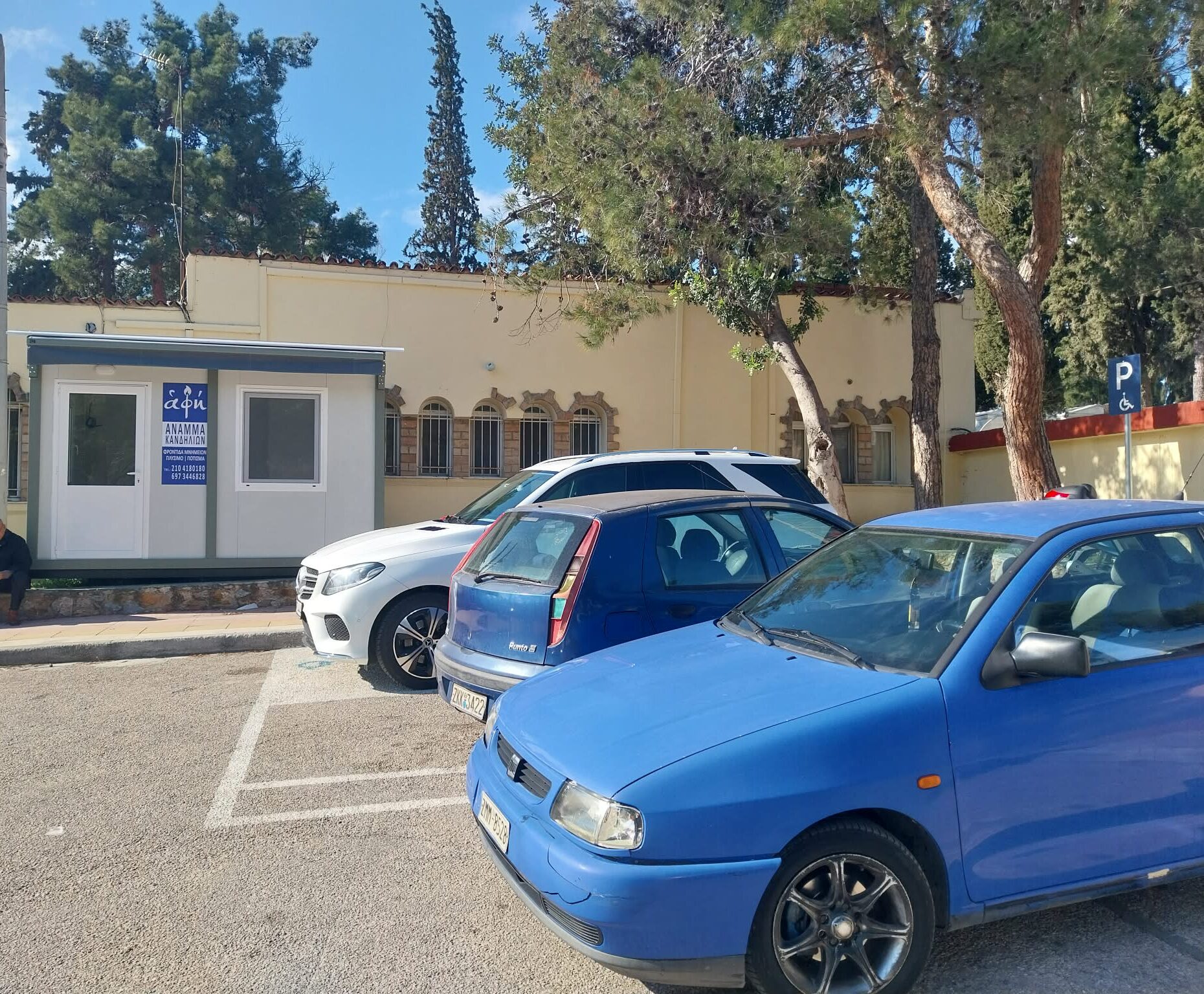 Πρόσθετα ερωτήματα προκαλεί η τοποθέτηση ειδικού οικίσκου στην είσοδο του κοιμητηρίου, για τις ανάγκες υλοποίησης της σύμβασης. Εργαζόμενοι και κάτοικοι θέτουν ζήτημα νομιμότητας της εγκατάστασης σε δημόσιο κοινόχρηστο χώρο, ζητώντας να διευκρινιστεί με ποια άδεια και ποια απόφαση έγινε η τοποθέτηση, χωρίς μέχρι στιγμής να υπάρχει επίσημη έγγραφη ενημέρωση. Σημειώνεται ότι η διαμόρφωση του κοινόχρηστου χώρου είχε χρηματοδοτηθεί από το “πράσινο ταμείο”, σύμφωνα με την πινακίδα που υπάρχει ακόμα στο σημείο.