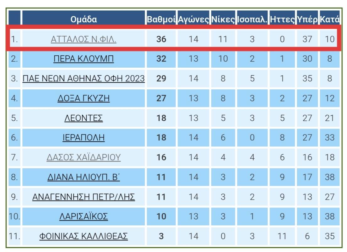 Ο Άτταλος συνεχίζει αήττητος την πορεία του στο πρωτάθλημα, επιβεβαιώνοντας τον τίτλο του φαβορί και δείχνοντας πως, παρά τις δυσκολίες και τις απουσίες, διαθέτει βάθος και ποιότητα για να φτάσει στον στόχο του και είναι μία από τις τρεις μόλις αήττητες ομάδες σε όλη την ΕΠΣΑ, μαζί με τον Φωστήρα και τους Ίωνες Αλίμου.