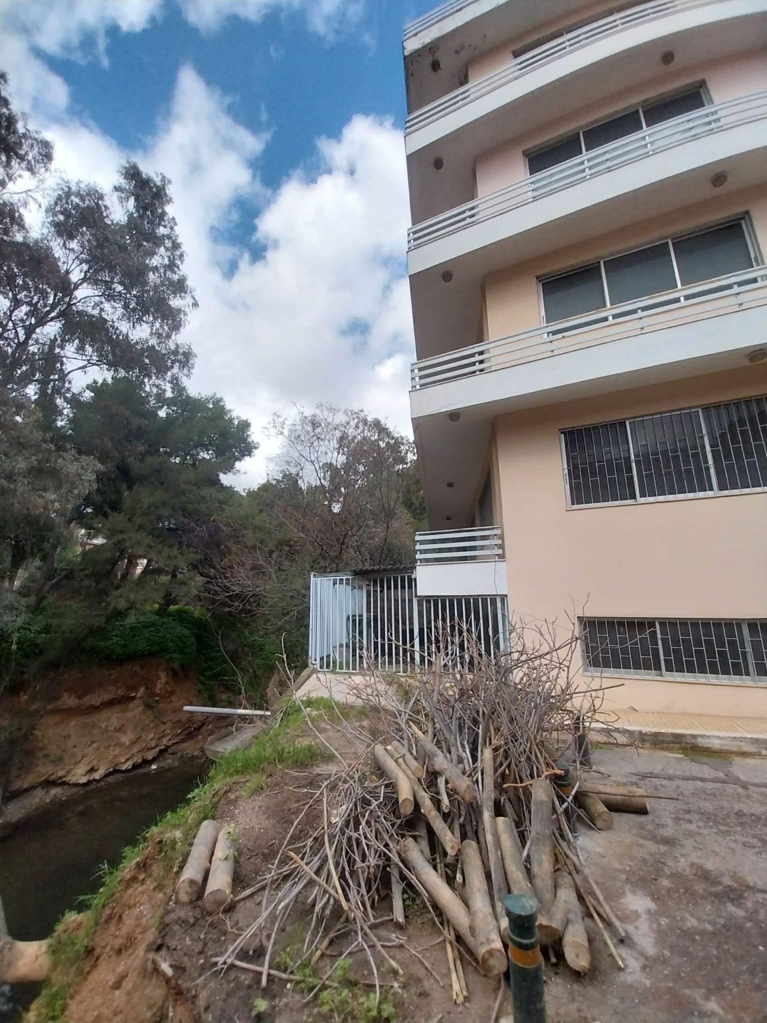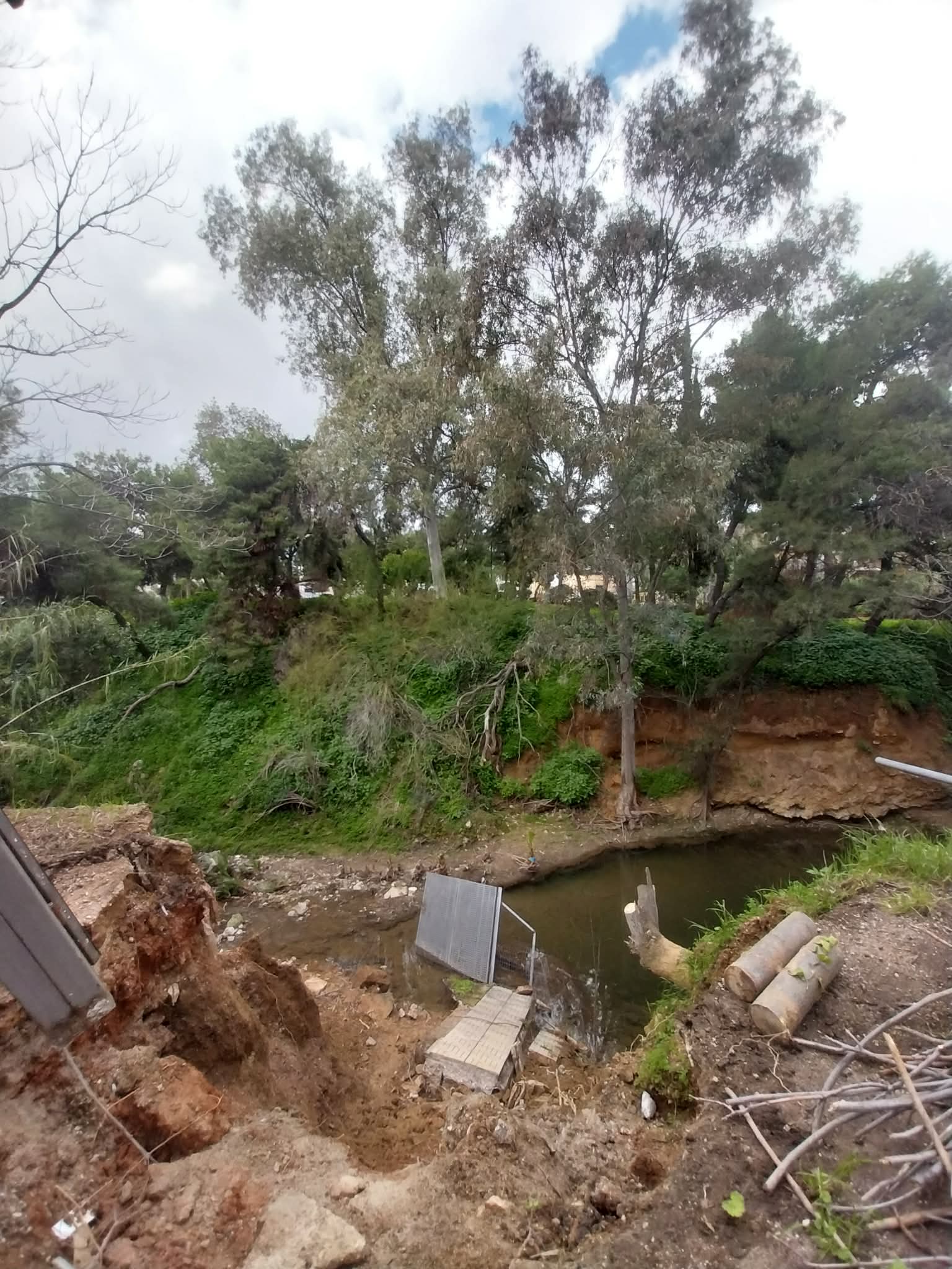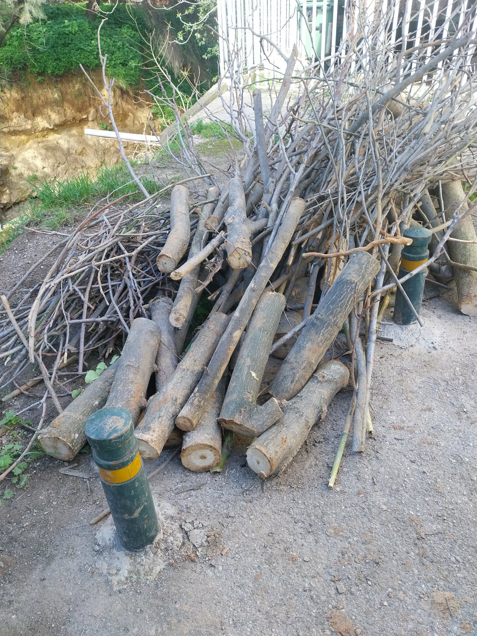 Στα ήδη υπάρχοντα κολονάκια, τα οποία από μόνα τους δεν επαρκούν για να αποτρέψουν ατύχημα, κάποιοι θεώρησαν σκόπιμο να προσθέσουν «για μεγαλύτερη ασφάλεια» ξερά κλαδιά και ξύλα. Μια εικόνα που προκαλεί περισσότερο θυμηδία παρά αίσθημα προστασίας, σε ένα σημείο όπου η εγγύτητα με το ρέμα και η αστάθεια του εδάφους επιβάλλουν σοβαρές παρεμβάσεις.