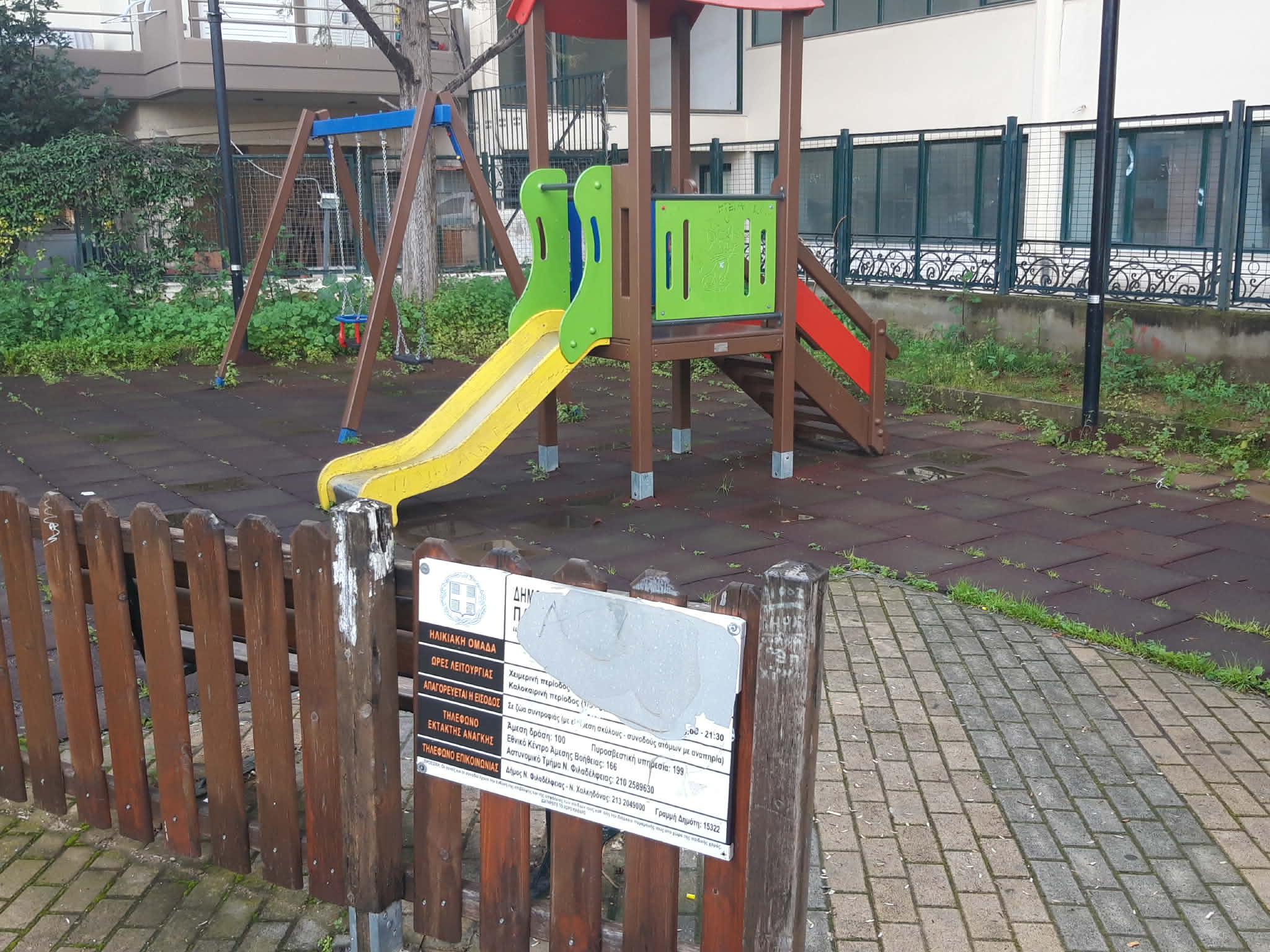 Παραμένει σε κακή κατάσταση η παιδική χαρά στη Νέα Χαλκηδόνα, στην οδό Θεοδώρου Παταλά, προκαλώντας έντονη ανησυχία σε γονείς και κατοίκους της περιοχής. Χόρτα και σκουπίδια καλύπτουν μεγάλο μέρος του χώρου, η περίφραξη είναι σε σημεία κατεστραμμένη, ενώ ο εξοπλισμός δείχνει εγκατάλειψη και έλλειψη συστηματικής συντήρησης. Η εικόνα αυτή δεν συνάδει με έναν χώρο που προορίζεται για καθημερινή χρήση από μικρά παιδιά.