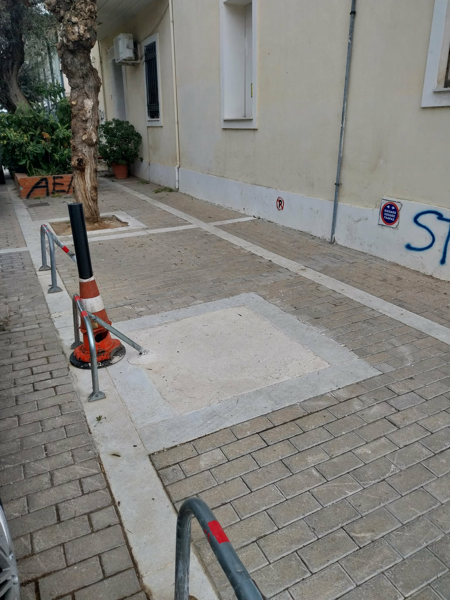 Μέσα σε αυτό το πλαίσιο, η κατάληψη των πεζοδρομίων έχει καταστεί μια δυστυχώς συνηθισμένη πρακτική από οδηγούς που αδυνατούν να βρουν χώρο στάθμευσης. Ωστόσο, τα όσα καταγράφονται ξεπερνούν κάθε όριο: δενδροδόχοι καλύπτονται με τσιμεντοκονίαμα, τοποθετούνται πτυσσόμενες μπάρες και τμήματα πεζοδρομίων μετατρέπονται αυθαίρετα σε ιδιωτικούς χώρους στάθμευσης, οι οποίοι μάλιστα παρακολουθούνται και από κάμερες.