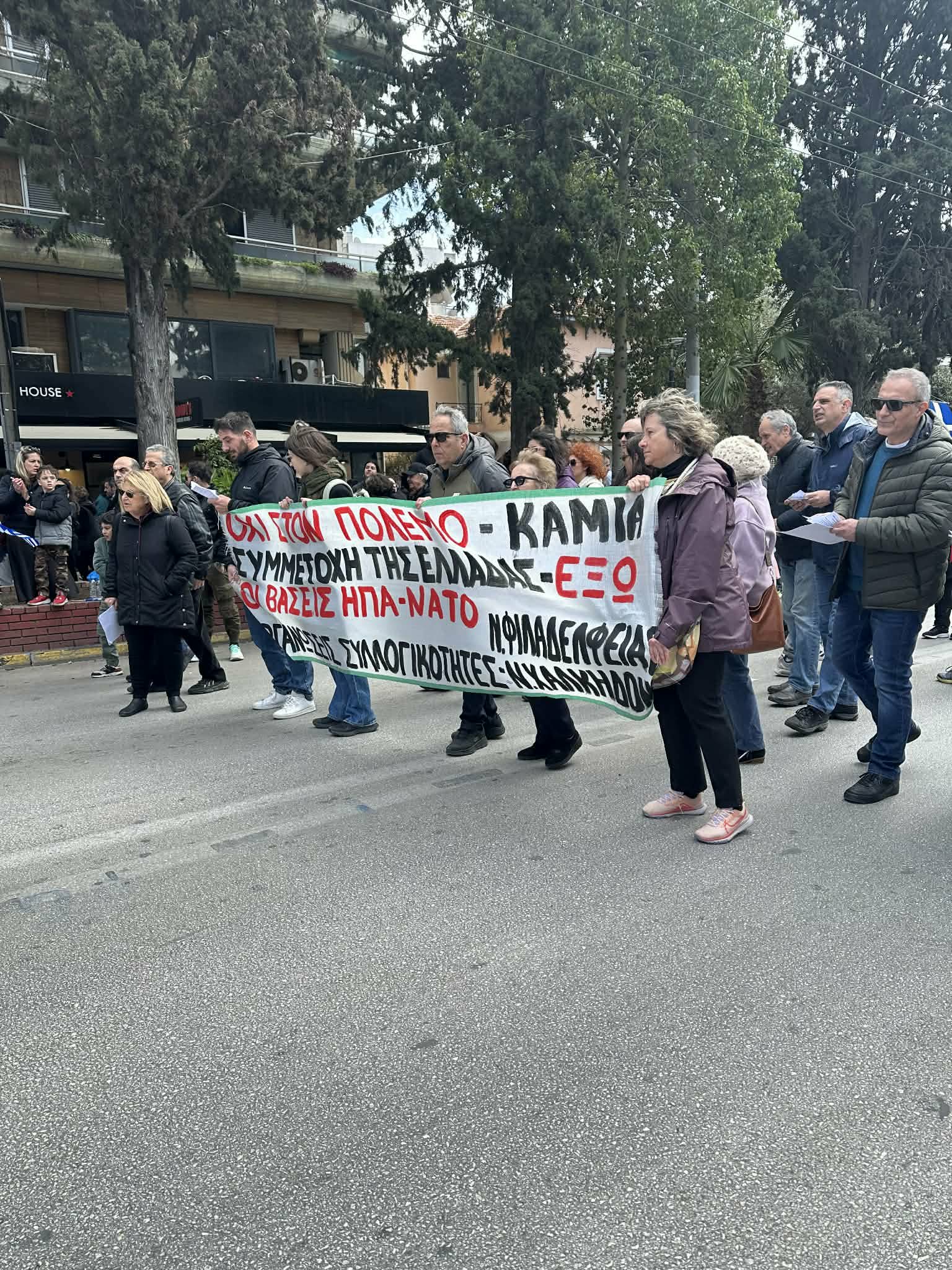 Αντιπολεμικά συνθήματα ακούστηκαν στη Νέα Φιλαδέλφεια μετά το τέλος της μαθητικής παρέλασης της 25ης Μαρτίου, όταν ομάδα συμπολιτών πραγματοποίησε συμβολική πορεία εκφράζοντας την έντονη ανησυχία της για τις εξελίξεις στη Μέση Ανατολή και την κλιμάκωση της έντασης μεταξύ Ιράν, ΗΠΑ και Ισραήλ.