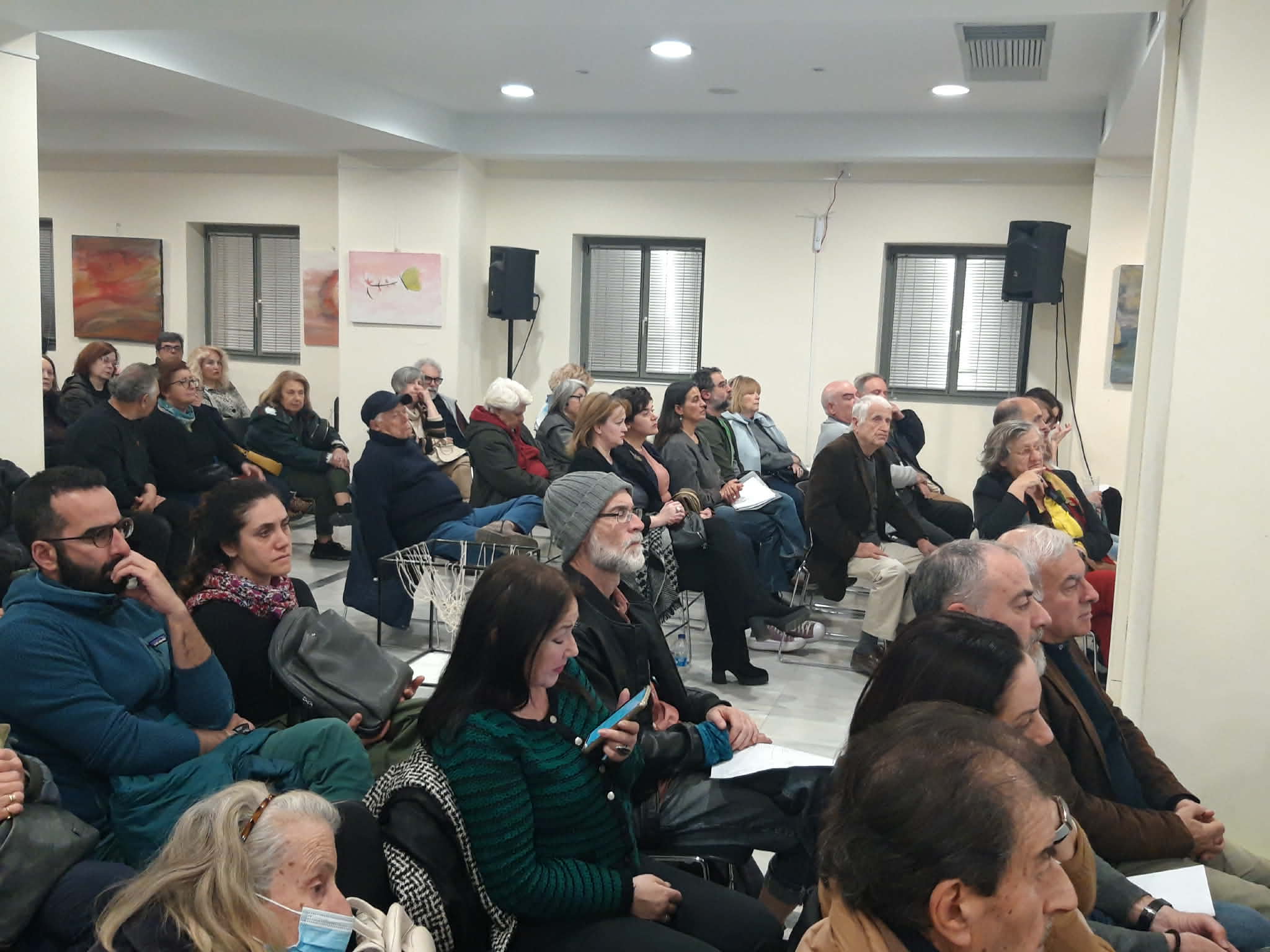Με συμμετοχή δεκάδων κατοίκων της πόλης μας και ευαισθητοποιημένων πολιτών από όλη την Αθήνα πραγματοποιήθηκε η εκδήλωση με θέμα «Είμαστε με τα ποτάμια μας – Κηφισός, Ποδονίφτης, Γιαμπουρλάς σε κίνδυνο», την Παρασκευή 13/3/26, στην αίθουσα του ΠΠΙΕΔ.