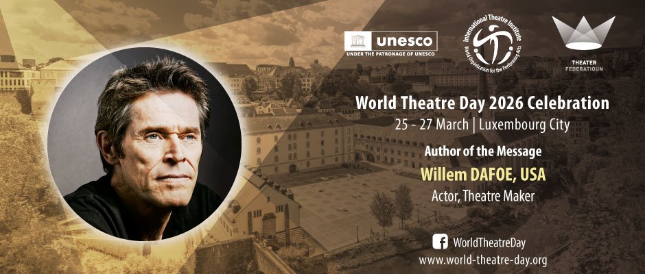 Το Εκτελεστικό Συμβούλιο του Διεθνούς Ινστιτούτου Θεάτρου, επέλεξε φέτος τον διακεκριμένο και διεθνώς αναγνωρισμένο Αμερικανό ηθοποιό Willem Dafoe (Γουίλεμ Νταφόε), για τη συγγραφή του Μηνύματος της Παγκόσμιας Ημέρας Θεάτρου 2026
