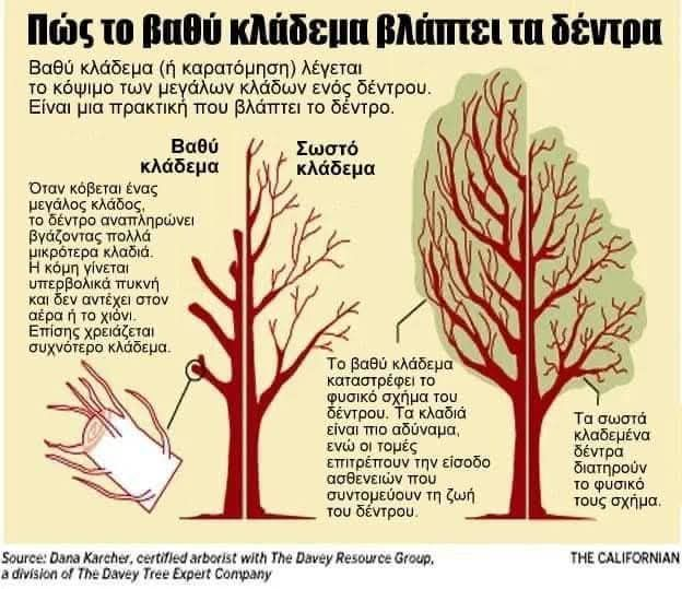 Σύμφωνα με τη σύγχρονη επιστημονική πρακτική στη δενδροκομία, το βαθύ κλάδεμα — δηλαδή η εκτεταμένη αφαίρεση μεγάλων κλάδων ή σημαντικού μέρους της κόμης — προκαλεί έντονο βιολογικό στρες στα δέντρα. Ως αντίδραση, τα δέντρα αναπτύσσουν πολλούς νέους βλαστούς, οι οποίοι όμως είναι συνήθως αδύναμοι και λιγότερο ανθεκτικοί σε ανέμους και καιρικά φαινόμενα. Έτσι, ενώ το βαθύ κλάδεμα συχνά εφαρμόζεται για λόγους ασφάλειας, μπορεί τελικά να δημιουργήσει μεγαλύτερο κίνδυνο στο μέλλον.