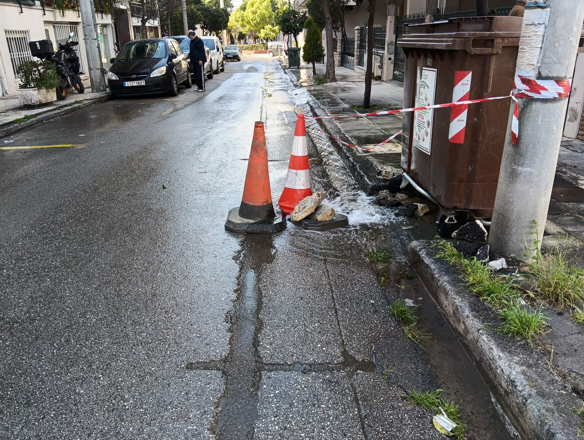 Διαρροή νερού στην οδό Μαιάνδρου στη Νέα Φιλαδέλφεια – Εχει κληθεί η ΕΥΔΑΠ για την αποκατάσταση της βλάβης στο δίκτυο. Ο Δήμος τοποθέτησε τους σχετικούς κώνους.